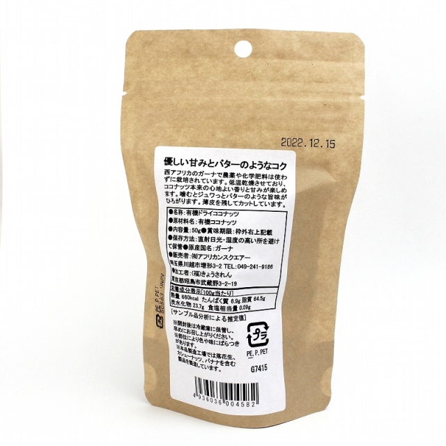 原材料名: ココナッツ 有機JAS認証取得原料使用